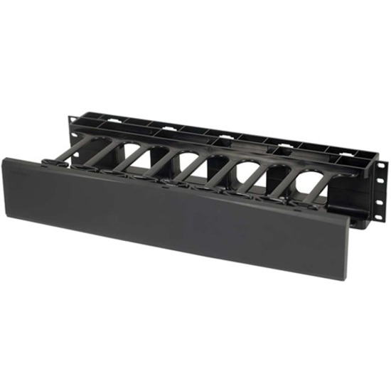 C2G 2U Single-Sided Horizontal Cable Management Panel - Cable Management Panel - Black - 2U Rack Height - 19" Panel Width - Plastic